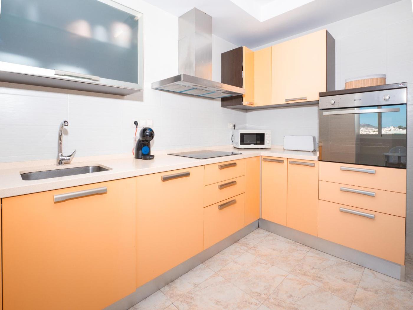 Apartamento con balcón. This spacious apartment features 1 living room, 3 separate bedrooms and 1 bathroom with a bath and free toiletries. The fully equipped kitchen has a stovetop, a refrigerator, a dishwasher and kitchenware. The air-conditioned apartment features a flat-screen TV, a washing machine, a tea and coffee maker, a seating area as well as sea views. The unit has 4 beds.