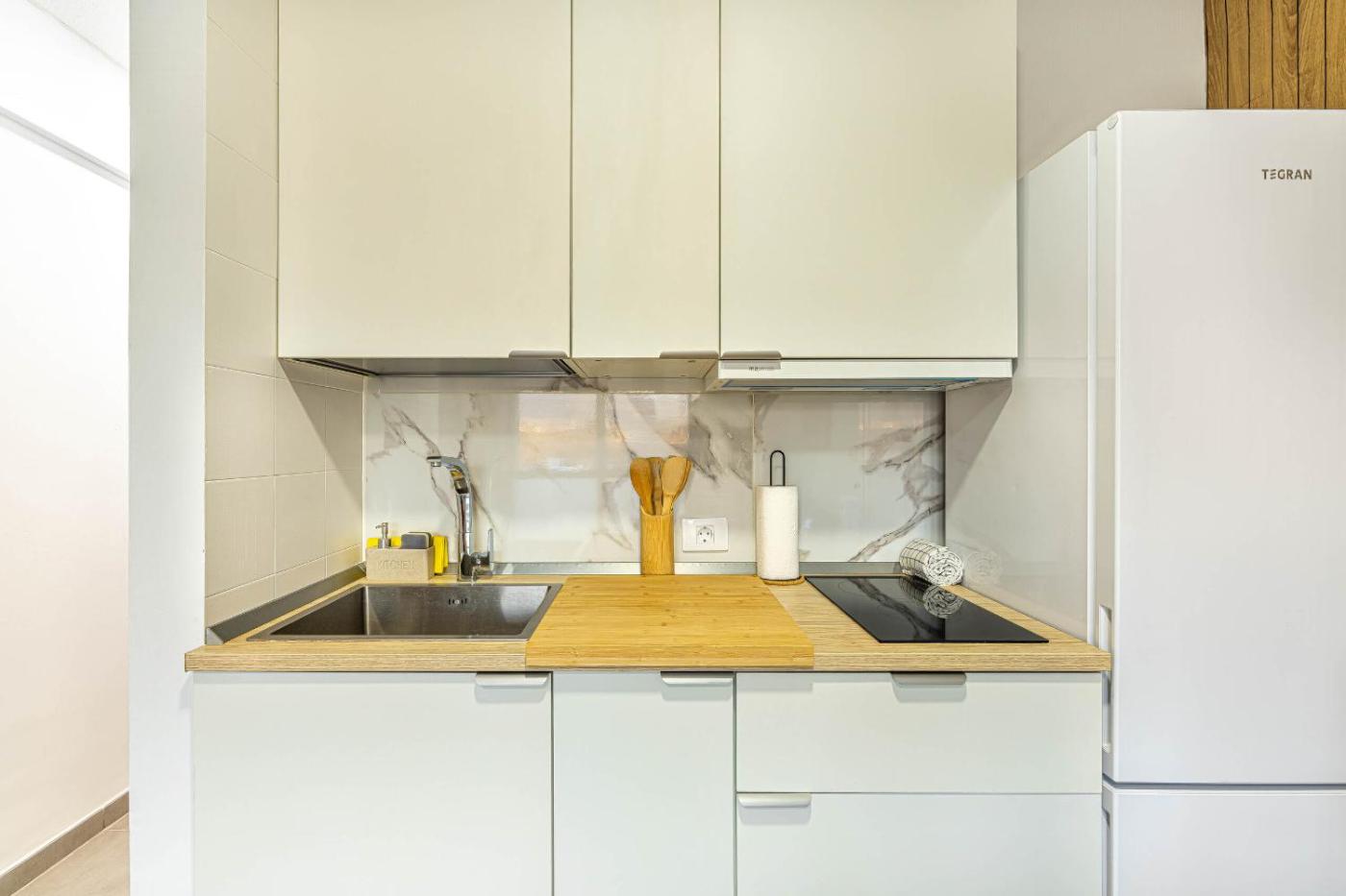El apartamento tiene 1 dormitorio, una sala de estar con TV de pantalla plana, una cocina equipada y 1 baño con ducha y secador de pelo. Hay toallas y ropa de cama en el apartamento.