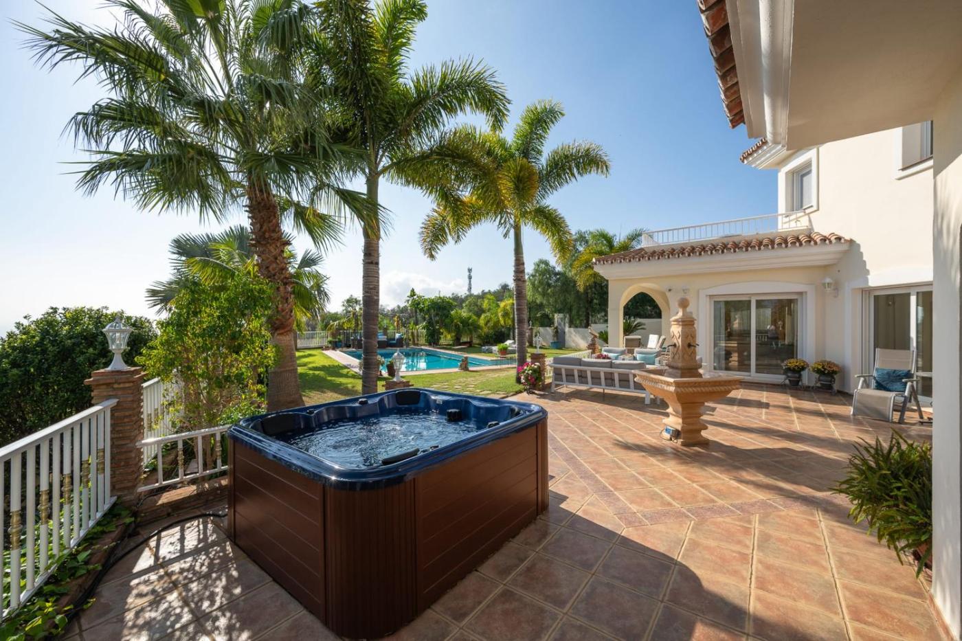 Villa. The hot tub and fireplace are the special features of this villa. Boasting a private entrance, this spacious villa also comes with 5 separate bedrooms and 5 bathrooms with a bath and a shower. Guests will find a stovetop, a refrigerator, a dishwasher and kitchenware in the fully equipped kitchen. The villa also includes a barbecue. The air-conditioned villa features a TV, a washing machine, a coffee machine, a dining area as well as sea views. The unit has 6 beds.