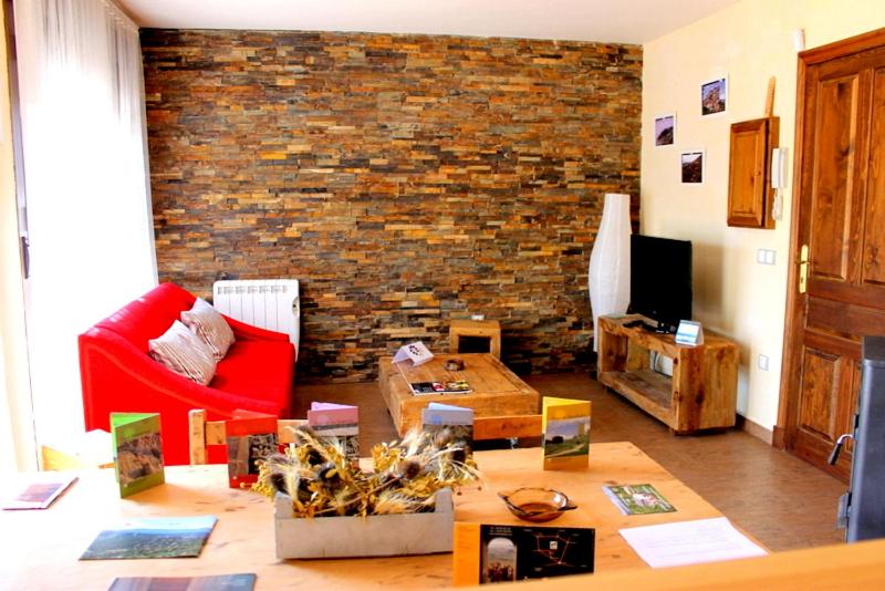 Apartamento - Planta baja. This semi first floor apartment has a living room with a fireplace, sofa and TV. An oven, microwave is included in the kitchenette. The bathroom comes with a hairdryer. There is no washing machine and the room has no window to the outside. Access to the room is through the shared staircase. Free WiFi is available. ;