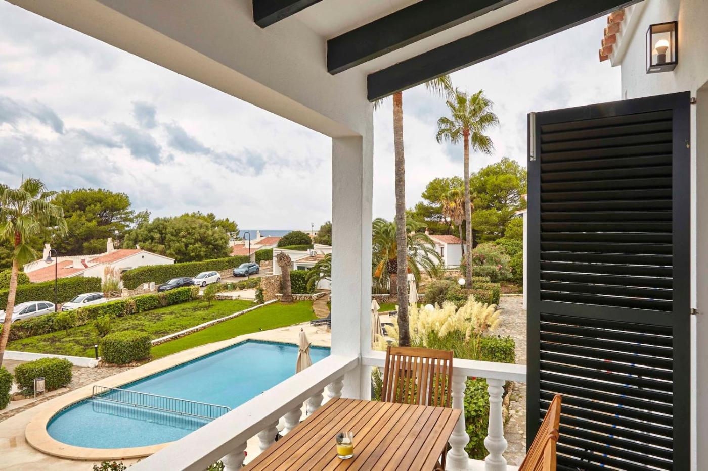 OasisBlanc Binibeca se encuentra en Binibeca, a 10 min a pie de Cala Binibèquer y a 11 km de Puerto de Mahón, y ofrece alojamiento con wifi gratis, aire acondicionado, piscina al aire libre y jardín.