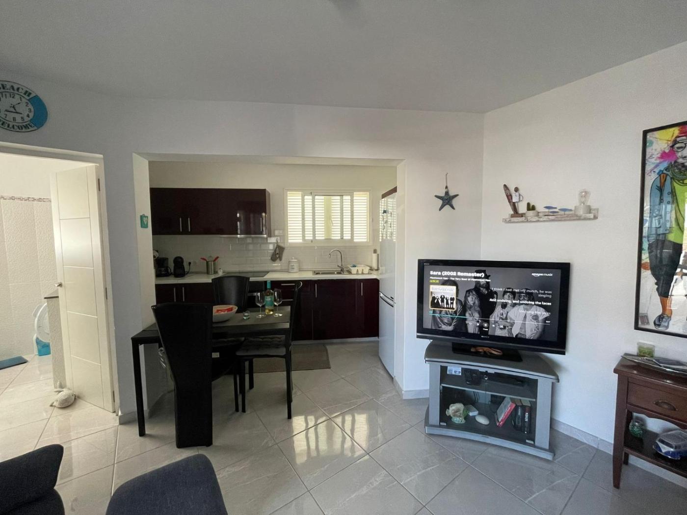El apartamento cuenta con terraza y vistas al jardÃn, y tiene 1 dormitorio, una sala de estar, TV de pantalla plana, una cocina equipada con nevera y horno, y 1 baño con ducha. Hay toallas y ropa de cama en el apartamento.
