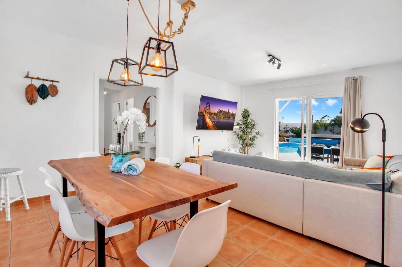 CASA DUNAS, que tiene un balcón con vistas al jardÃn, piscina al aire libre y jardÃn, se encuentra en Corralejo, cerca de Las Agujas y a 30 km de Casa Museo de Unamuno (Fuerteventura). Esta villa también tiene piscina privada y wifi gratis.
