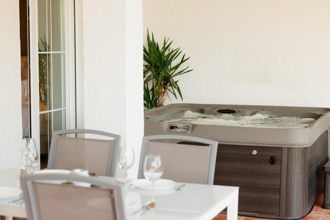 El apartamento ofrece bañera de hidromasaje. Hay terraza y barbacoa en Sea view apartment with private garden and jacuzzi in Balcones del Lago, Istan.