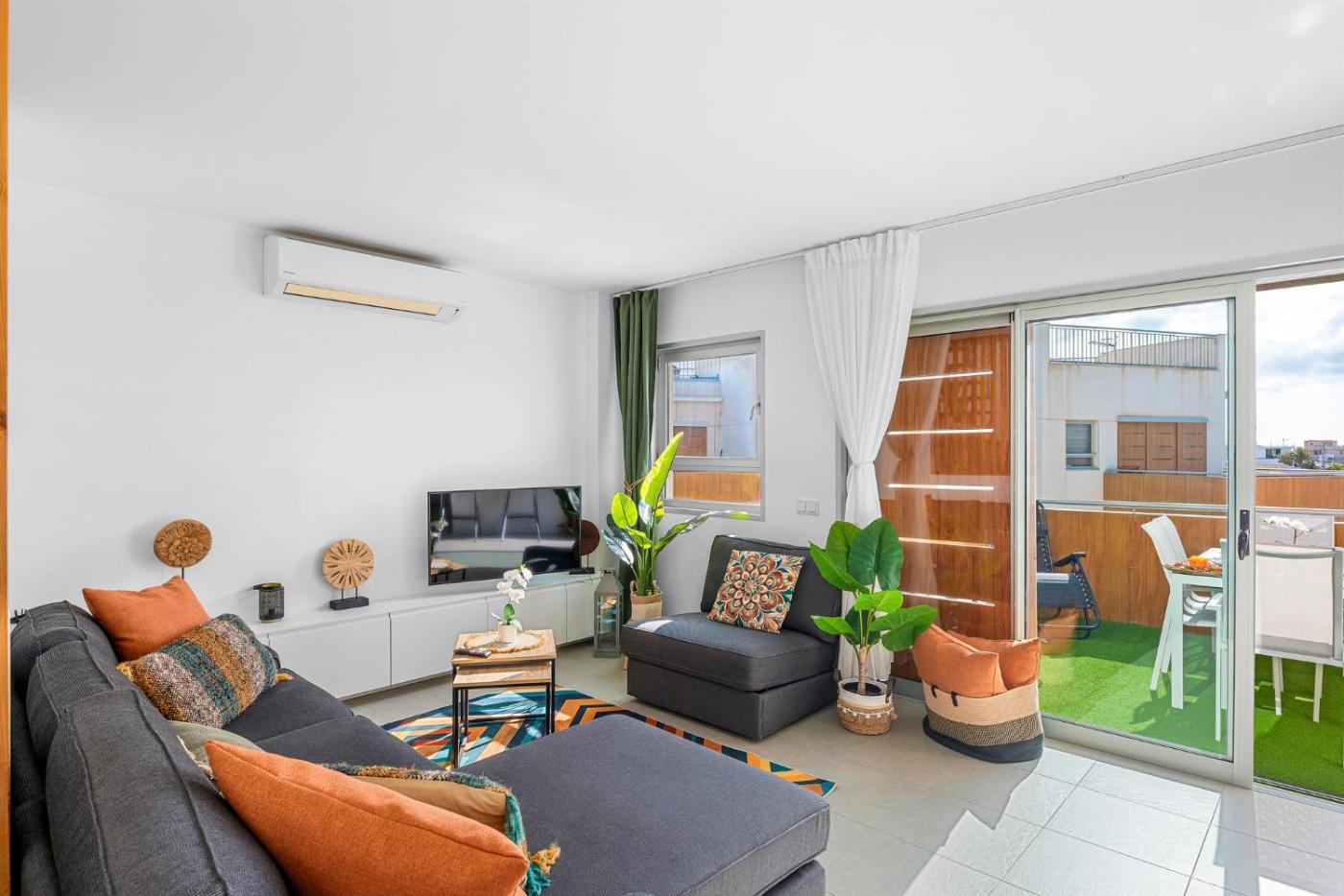 Este apartamento con aire acondicionado consta de 3 dormitorios, una sala de estar, una cocina totalmente equipada con nevera y cafetera, y 2 baños con ducha y secador de pelo. Hay toallas y ropa de cama en el apartamento.