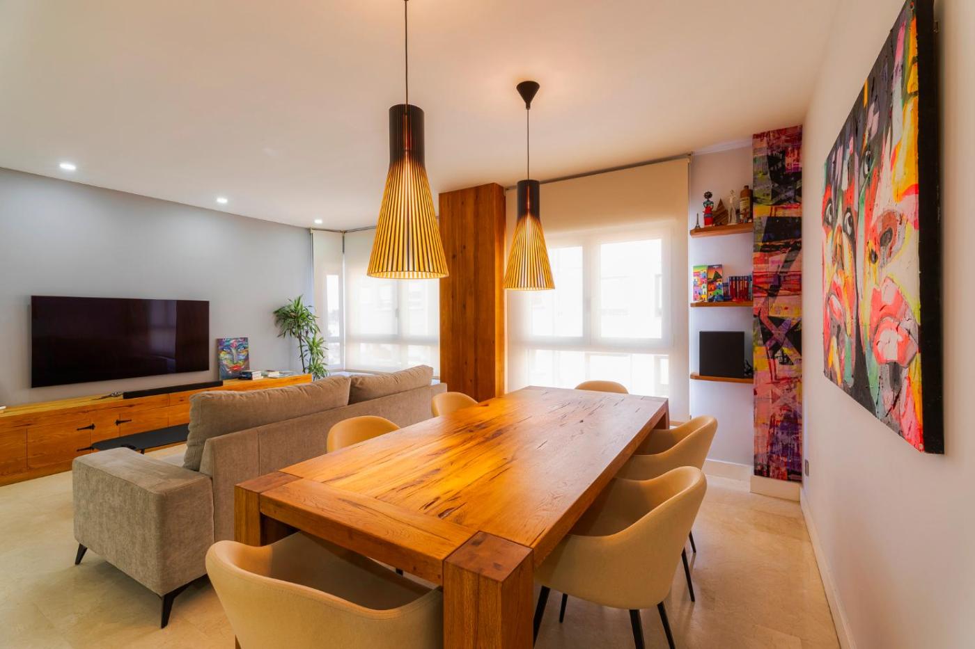 Apartamento de 3 dormitorios. This apartments special features are the hot tub and the fireplace. Featuring a private entrance, this air-conditioned apartment consists of 1 living room, 3 separate bedrooms and 2 bathrooms with a bath and a shower. The fully equipped kitchen features a stovetop, a refrigerator, a dishwasher and kitchenware. The spacious apartment provides a flat-screen TV with streaming services, a washing machine, soundproof walls, a tea and coffee maker as well as city views. The unit offers 4 beds.