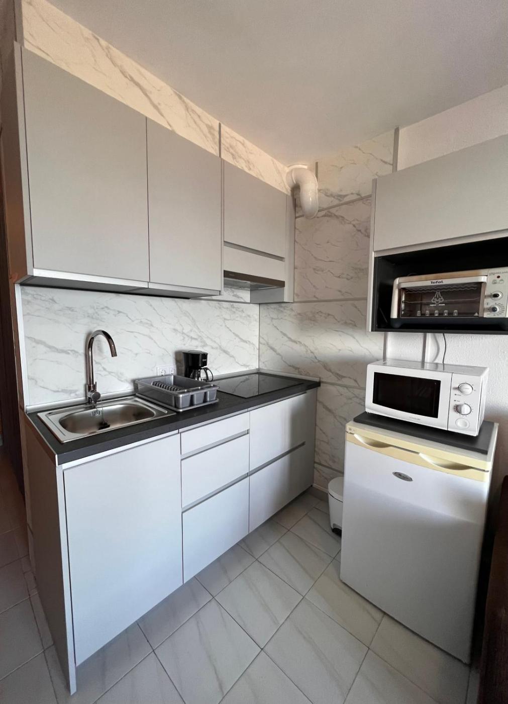 El apartamento dispone de TV. La cocina está equipada con nevera, horno y microondas, además de cafetera.
