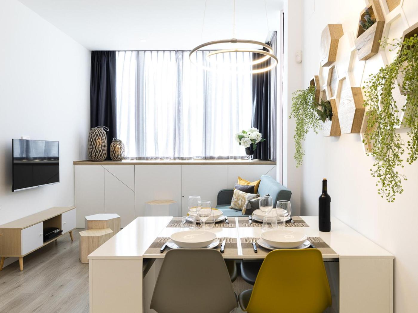 Apartamento. Featuring a private entrance, this air-conditioned apartment is comprised of 2 bedrooms and 1 bathroom with a shower. Meals can be prepared in the well-fitted kitchen, which comes with a stovetop, a dishwasher, kitchenware and an oven. The apartment offers a washing machine, a coffee machine, a dining area, heating, as well as a TV.
