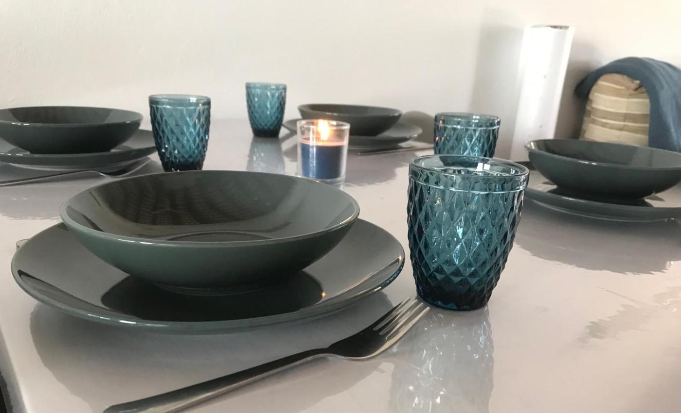 Todos los platos, vasos, cubiertos y otros utensilios de mesa se han desinfectado