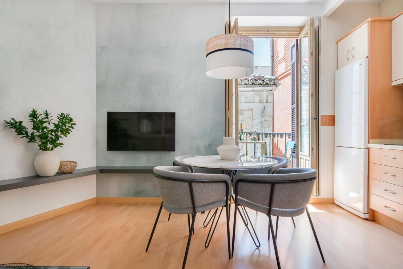 Apartamento con balcón. This air-conditioned apartment includes 1 living room, 1 separate bedroom and 1 bathroom with a shower. In the fully equipped kitchen, guests will find a stovetop, a refrigerator, kitchenware and a microwave. Boasting a balcony with city views, this apartment also offers a washing machine and a flat-screen TV. The unit has 2 beds.