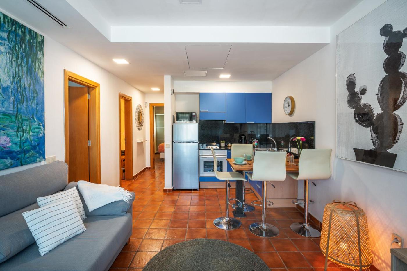 Apartamento de 1 dormitorio. Este apartamento cuenta con aire acondicionado, sala de estar, 1 dormitorio independiente y baño con ducha. La cocina está equipada con fogones, nevera, horno y microondas. El apartamento ofrece vistas al mar e incluye lavadora, TV de pantalla plana y vino o champán de cortesÃa. Incluye 1 cama. ;