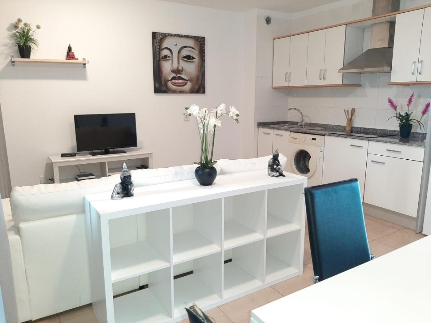 Apartamento con terraza - 82. Featuring a private entrance, this air-conditioned apartment is comprised of 1 living room, 1 separate bedroom and 1 bathroom with a shower and a hairdryer. Meals can be prepared in the well-fitted kitchen, which is fitted with a stovetop, a refrigerator, kitchenware and a microwave. This apartment features a washing machine, soundproof walls, a flat-screen TV with cable channels and a terrace. The unit offers 2 beds and 1 futon. ;