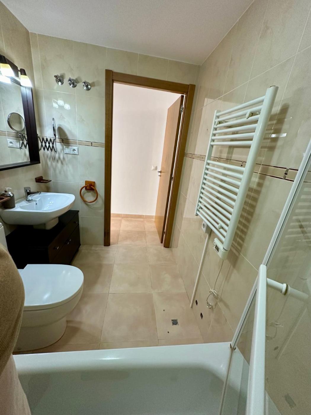 Apartamento de 2 dormitorios. This spacious apartment comprises 2 bedrooms, kitchen, a terrace and 2 bathrooms with a bath. The fully equipped kitchen features a refrigerator, a dishwasher, an oven and a microwave. The apartment comes with a TV, a washing machine, a coffee machine, as well as heating. The unit offers 3 beds.