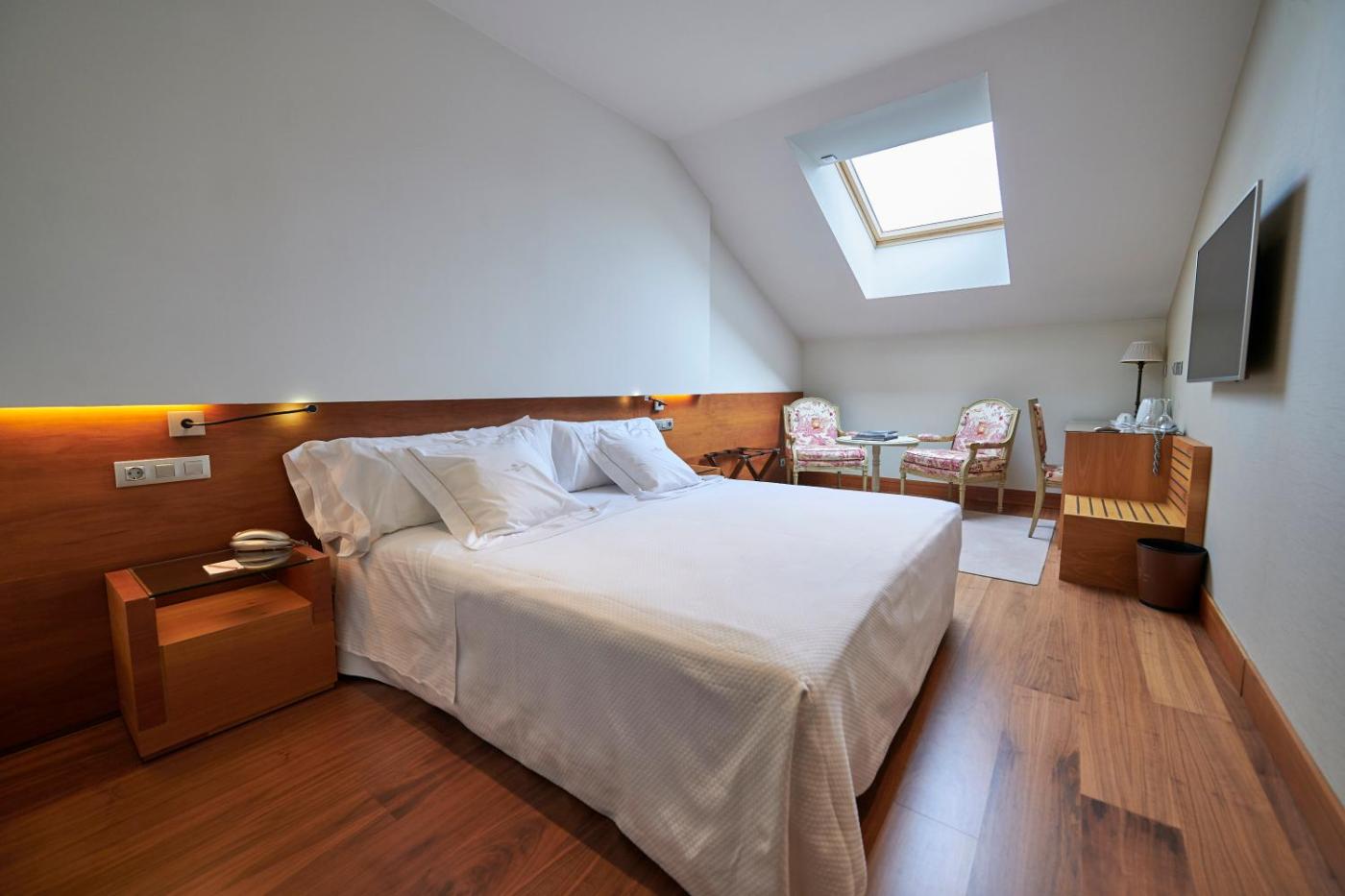 Habitación abuhardillada de lujo. Esta habitación doble cuenta con baño privado con artículos de aseo gratuitos, albornoces, ducha, bidet y secador de pelo. La habitación doble es amplia y cuenta con aire acondicionado, paredes insonorizadas, minibar, teteracafetera y TV de pantalla plana vía satélite. ;