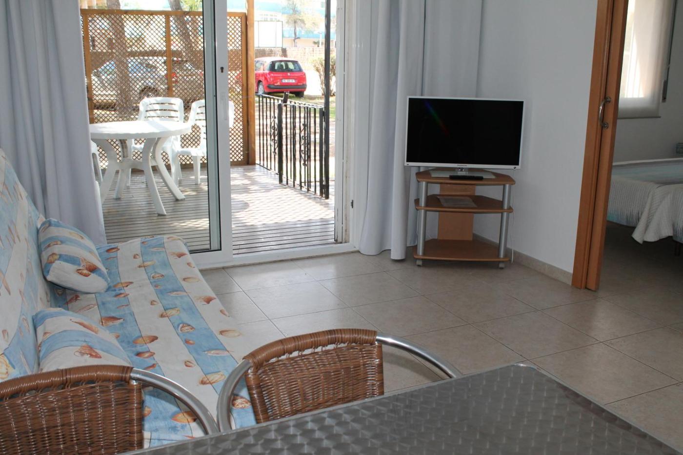 Apartamento de 1 dormitorio con vistas al jardín. Estos apartamentos modernos disponen de 1 dormitorio con 2 camas individuales, sofá cama, WiFi gratuita, terraza amueblada y vistas al jardín. Cada apartamento tiene salón con TV y zona de cocina con microondas, fogones y lavavajillas. ;