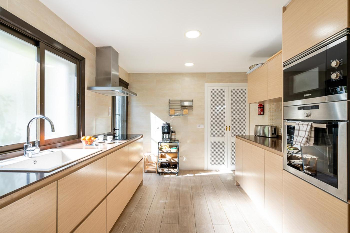 Esta casa o chalet con aire acondicionado consta de 3 dormitorios, una sala de estar, una cocina totalmente equipada con nevera y cafetera, y 3 baños con ducha y secador de pelo. Hay toallas y ropa de cama en la casa o chalet.