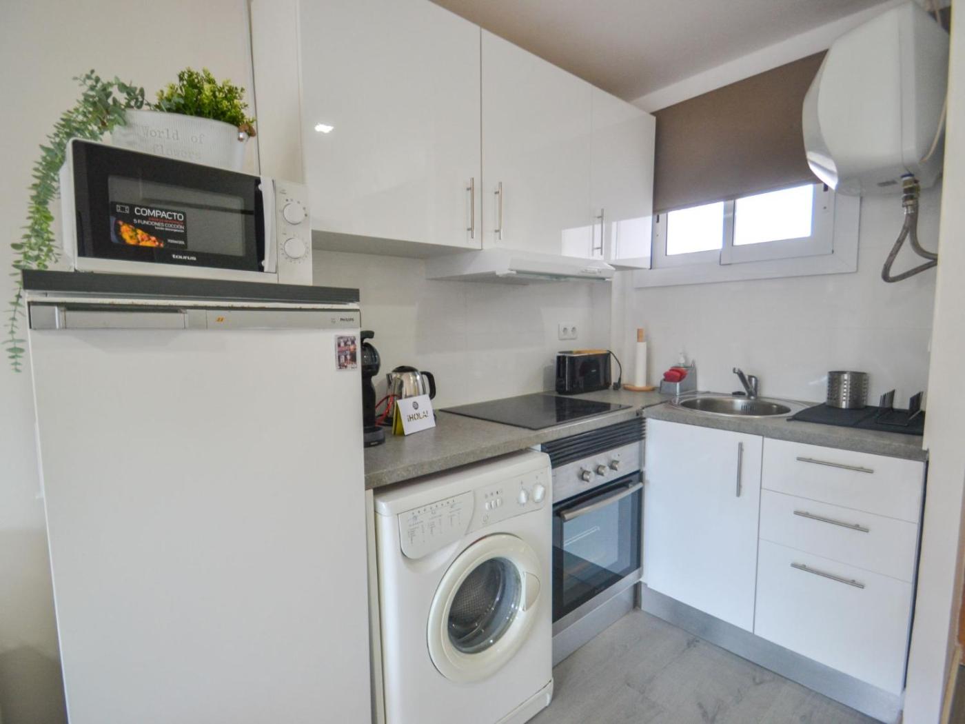 Apartamento. This air-conditioned apartment comprises 1 living room, 1 separate bedroom and 1 bathroom with a shower. The well-fitted kitchen has a stovetop, a refrigerator, kitchenware and a microwave. This apartment features a washing machine, a coffee machine, a TV and a terrace. The unit offers 2 beds.